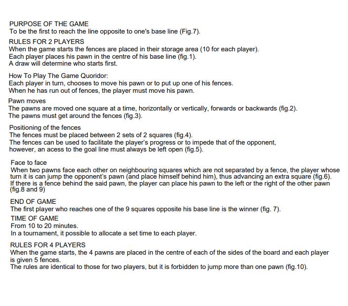Quoridor is a must among strategy games. Its rules are amazingly simple: just make it through the labyrinths your opponent creates to get to the other side. This game requires strategy and quick thinking for two players and offers a load of fun for four... Both occasional and expert players from around the world recognize the fun and exceptional strategic aspects of Quoridor.