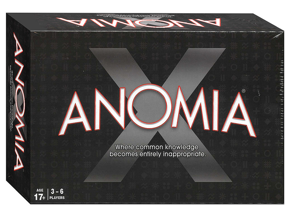 Anomia X! The award-winning party game is back with bad manners and an oversized martini. Anomia X pokes a stick at the underbelly of society, and the results are decidedly NSFW! Fast-paced, brain-bending and irreverent, Anomia X promises hours of laugh-till-you-cry hilarity for you and your twisted friends. With 4 decks of cards.