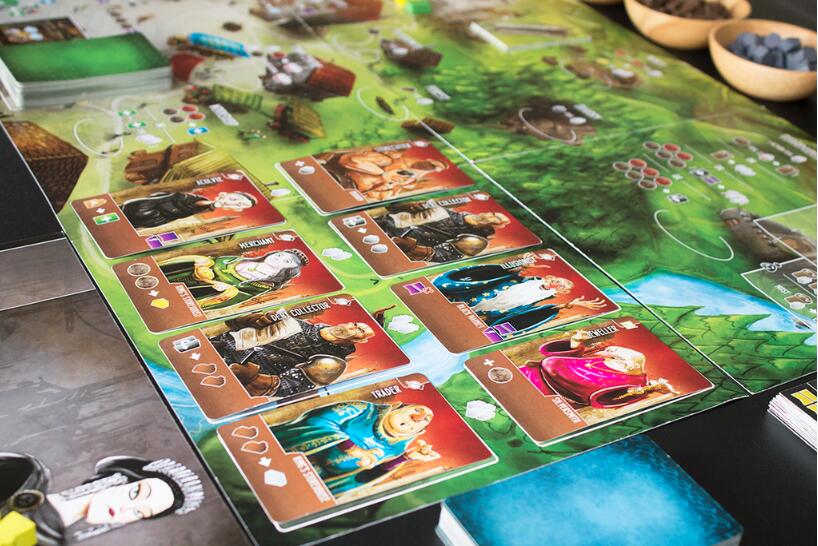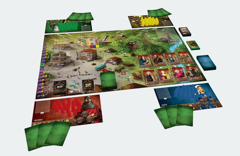 Architects of the West Kingdom is set at the end of the Carolingian Empire, circa 850 AD. As royal architects, players compete to impress their King and maintain their noble status by constructing various landmarks throughout his newly appointed domain. Players need to collect raw materials, hire apprentices, and keep a watchful eye on their workforce. These are treacherous times, and rival architects will stop at nothing to slow your progress. Will you remain virtuous, or be found in the company of thieves and black marketeers?