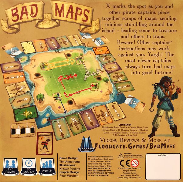 Bad Maps is a game of pirate programming and mixed up maps for 3 to 5 players that plays in about 30 minutes.
