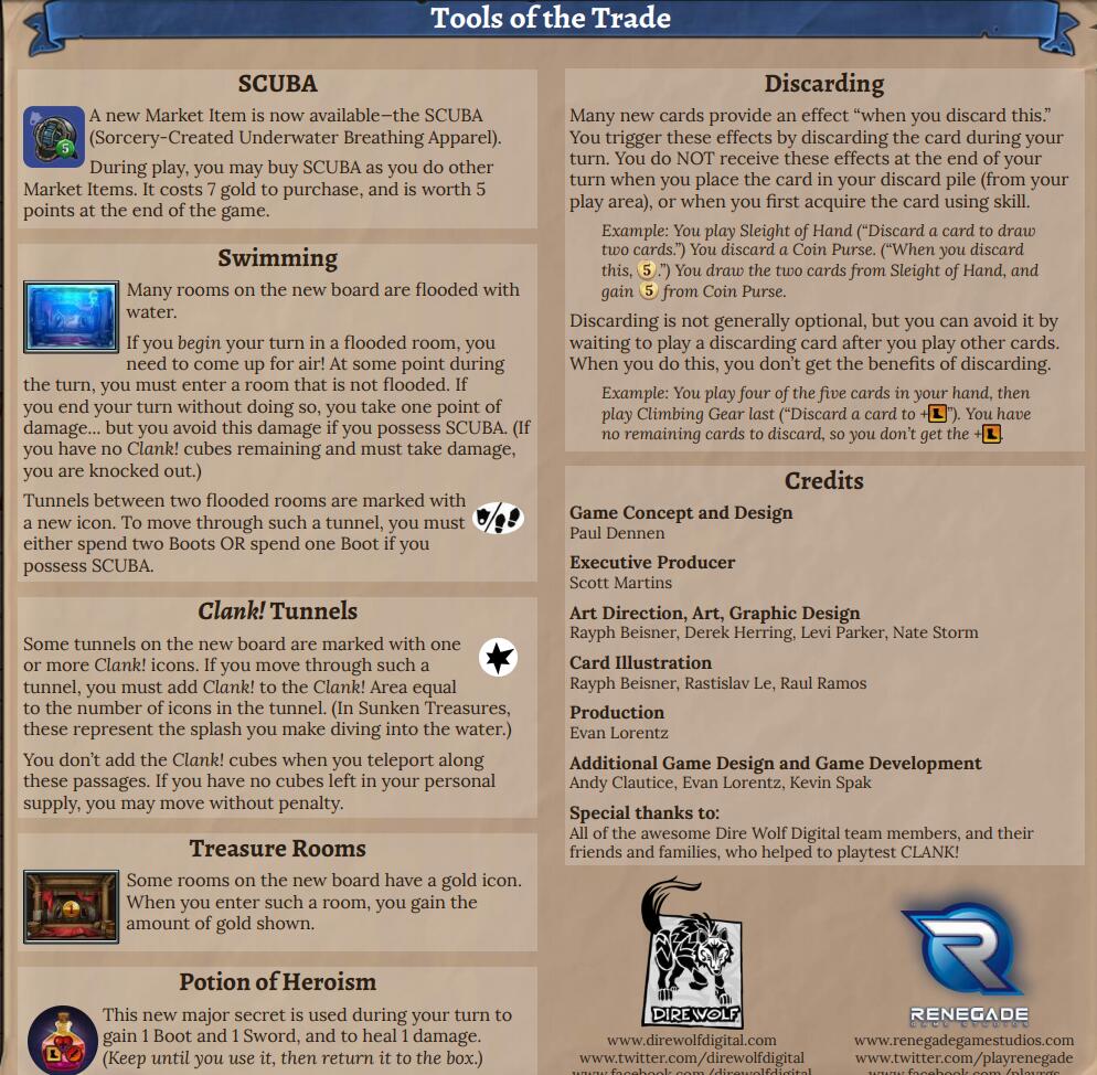 Clank! Sunken Treasures is an expansion for Clank! A Deck-Building Adventure. Players will explore two partially flooded maps with new Dungeon Deck cards, a new persistent monster to defeat, new environmental challenges, and more as they venture in the watery depths! Requires Clank! A Deck-Building Adventure to play.