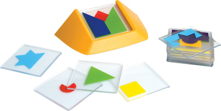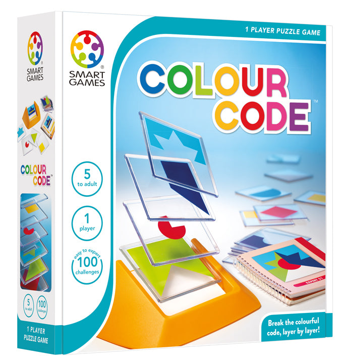 No doubt you'll love this puzzle as much as we do! Colour Code uses 18 bold, coloured shapes, each on a see-through tile. Pick a challenge, then stack a rack of tiles to recreate the exact composition presented by the challenge! However, you are not only working to sequence the shapes and colours, but you'll also need to work out which way round each tile goes!