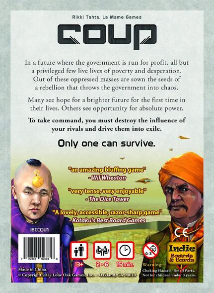 A stand-alone card game set in the universe of The Resistance.