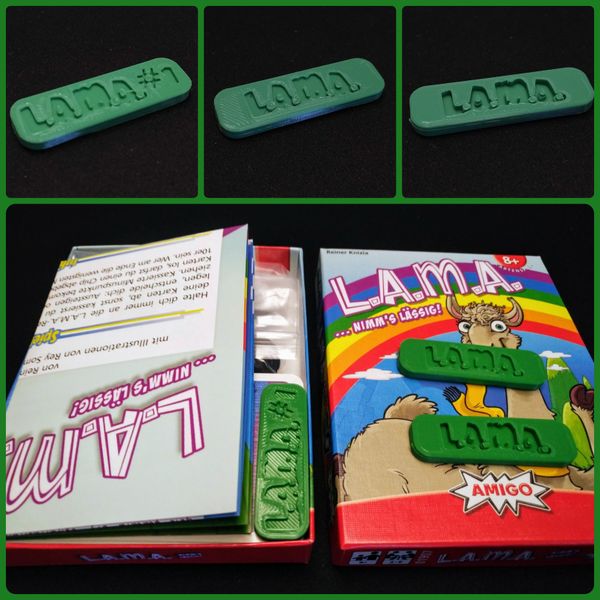 The round ends when one player empties their hand or all players have quit. In either case, players collect tokens based on the cards in front of them, whether in hand or on the table. Each different number card in hand gets you white tokens (each worth 1 point) equal to the value of the card while one or more llamas gets you a black token (worth 10 points). If you played all your cards, you can return one token (white or black) that you previously collected to the supply. You then shuffle all the cards and begin a new round.