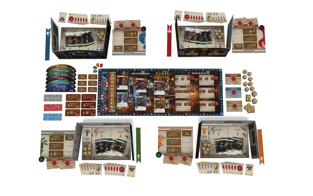 Combine your adventurer’s skills and abilities to complete contracts, recruit adventurers, and upgrade your Guild. Players each secretly assemble and order their teams at the same time. Predict your rivals’ likely moves as you sequence your orders to get what you need most. Will your planning pay off? Will you negotiate and cooperate with your rivals? Or will you overpower and outbid them to become the ultimate Guild Master?