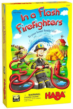 In In a Flash Firefighters, you must help try to put out the fire but watch out! The water hoses are all in a jumble. The first person to untangle and lay out their hose tiles to reach the fire is awarded a firefighting medal — but the fire hasn't been completely put out yet! The player who collects three medals first wins.