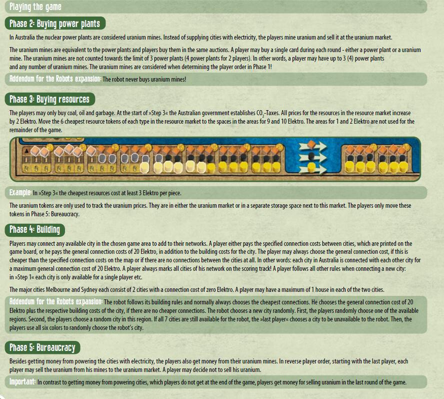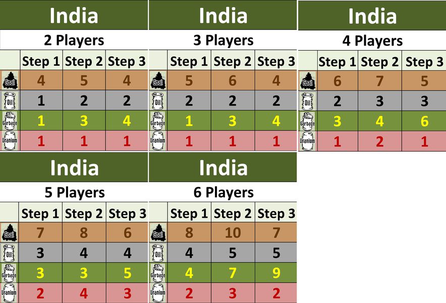 This is an expansion for Power Grid featuring India and Australia (one map on each side of the board). Players need Power Grid to play the game and follow the normal rules for Power Grid except for the few changes in the rules for this expansions to cover the special conditions of India and Australia.