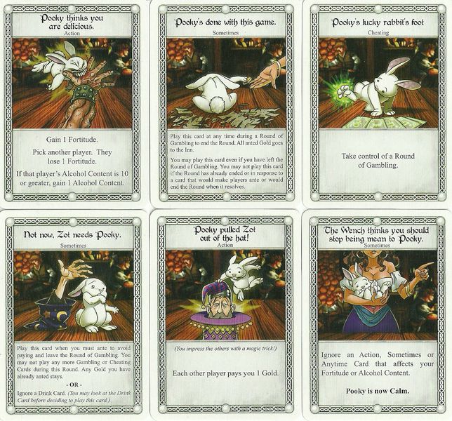 The Red Dragon Inn: Allies - Pooky lets the little white rabbit wreck havoc all on his own! This forty-card deck isn't an expansion for Zot the Wizard from The Red Dragon Inn, but rather allows Pooky to be a fifth character at the table and party with The Party. Bringing all his nature and vices to the table, get ready to see Pooky start partying a bit too hard for the rest of the table.
