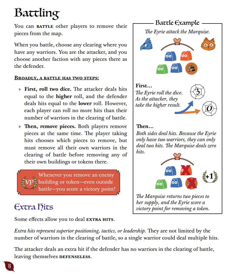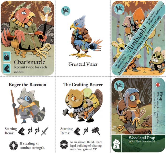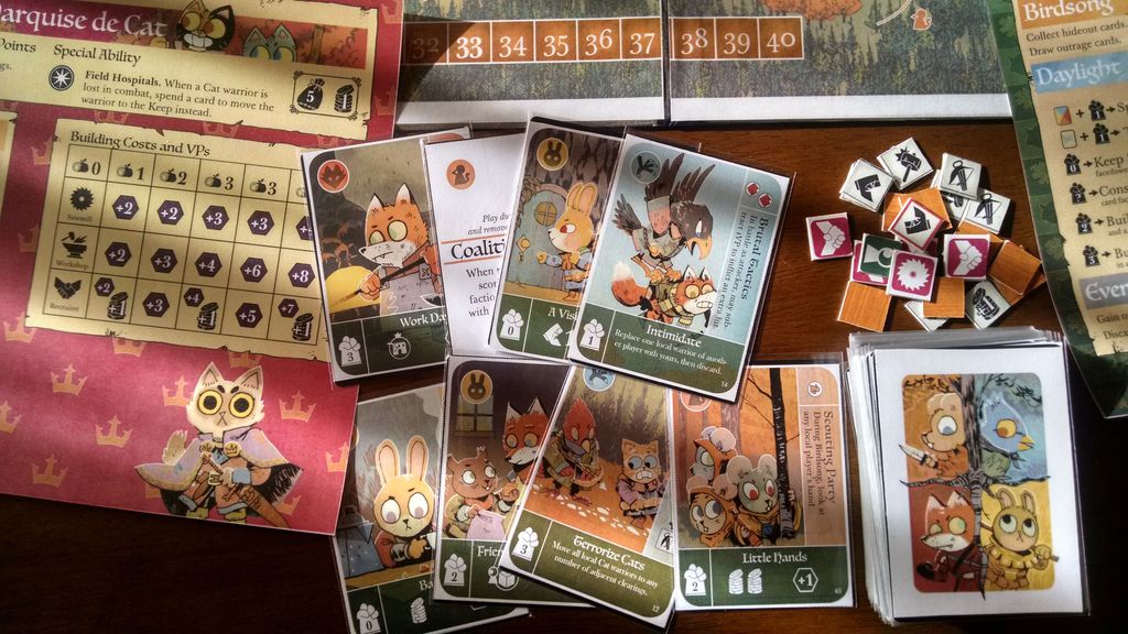 Meanwhile, at the edge of the region, the proud, squabbling Eyrie have found a new commander who they hope will lead their faction to resume their ancient birthright. The stage is set for a contest that will decide the fate of the great woodland. It is up to the players to decide which group will ultimately take root.