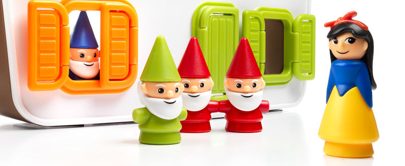 This classic tale has a few twists and turns to challenge kids and mom or dad! Players use logic to place the game characters in a vertical 3D house according to increasingly challenging rules. Familiar characters including dwarves, a witch and Snow herself, all huddled around a forest cottage. Also includes a family-friendly picture book.