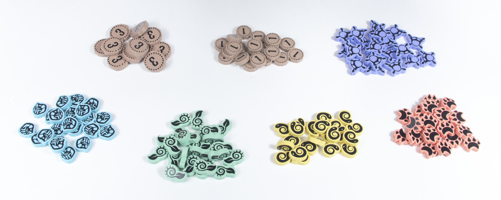 A set of 218 custom, wooden tokens including Energy, Fear, Beasts, Wilds, Disease, Strife, and even the new Badlands tokens! This set of tokens comes packaged in a full-color box roughly the size of the Branch & Claw expansion.