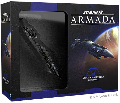 This pack includes everything you need to add 1 Recusant-class Destroyer to your games of Star Wars™: Armada including 1 painted plastic ship with base and fin, 2 ship cards, 14 upgrade cards, and 13 tokens