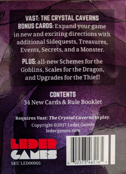 A set of bonus cards for Vast: The Crystal Caverns, originally included as free extras for backers of the Kickstarter for the second printing and miniatures.