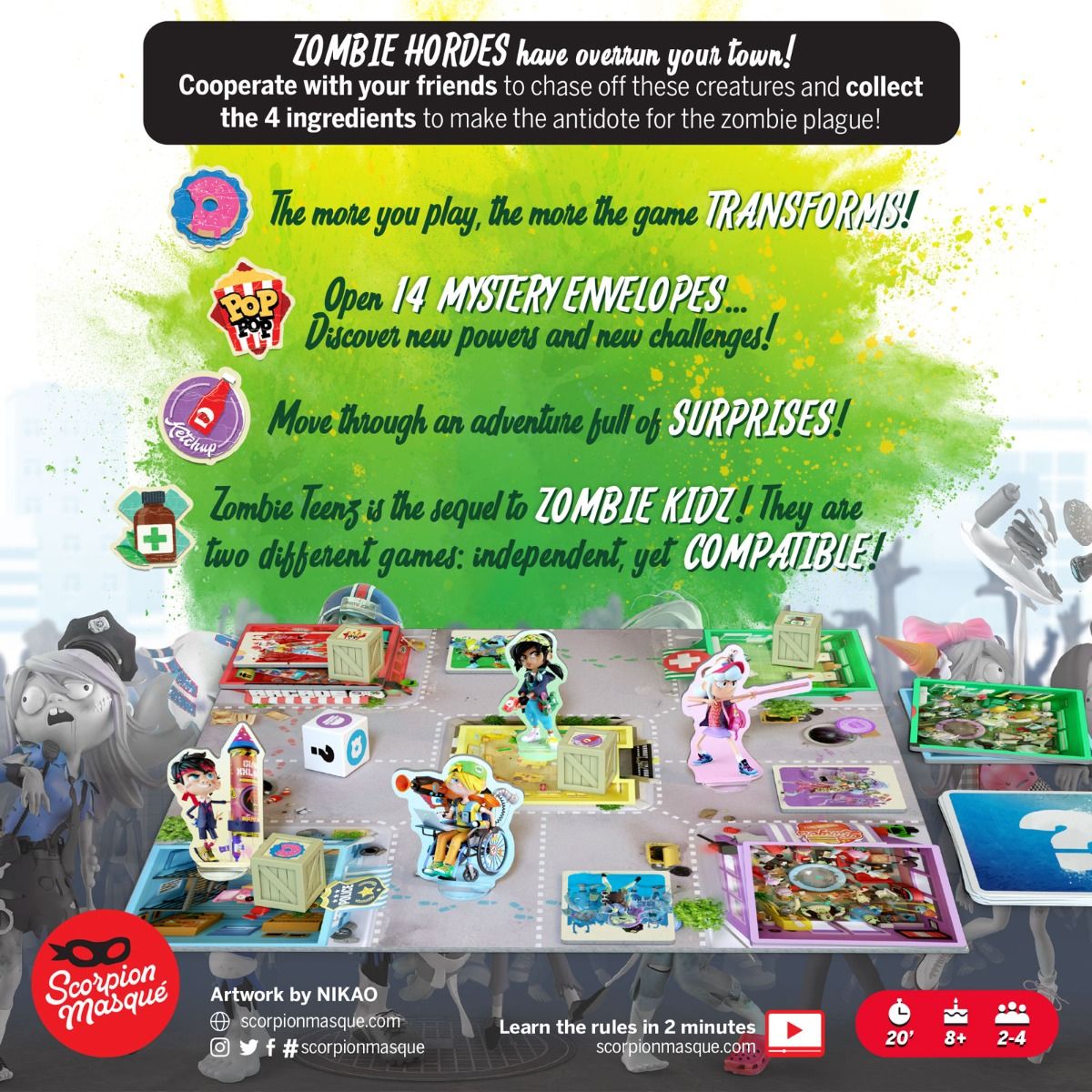 Zombies are wreaking havoc throughout the town. Cooperate with your friends and find the 4 ingredients to prepare the antidote that will change the zombies back to their human form! Zombie Teenz is a game that evolves, like its predecessor, Zombie Kidz. These two games are different and independent, but compatible!